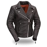 First Manufacturing Women's Hourglass Motorcycle Jacket (Black, X-Large)First Manufacturing Women's Hourglass Motorcycle Jacket (Black, X-Large) features soft milled cowhide 1.1-1.2 millimeter. It has front and back braiding and rivet detailing on the back for classic M/C look. It has an elasticized waist to hold the hourglass shape. It has two outside pockets and one inside pocket for storage. It has a zip-out, full-sleeve, quilted, high performance insulated thermal liner for extra warmth. It has a stretch liner in the arms for comfort while riding and protection against tearing. It has heavy snaps and original YKK zippers. It is non-rusting and non-corroding.